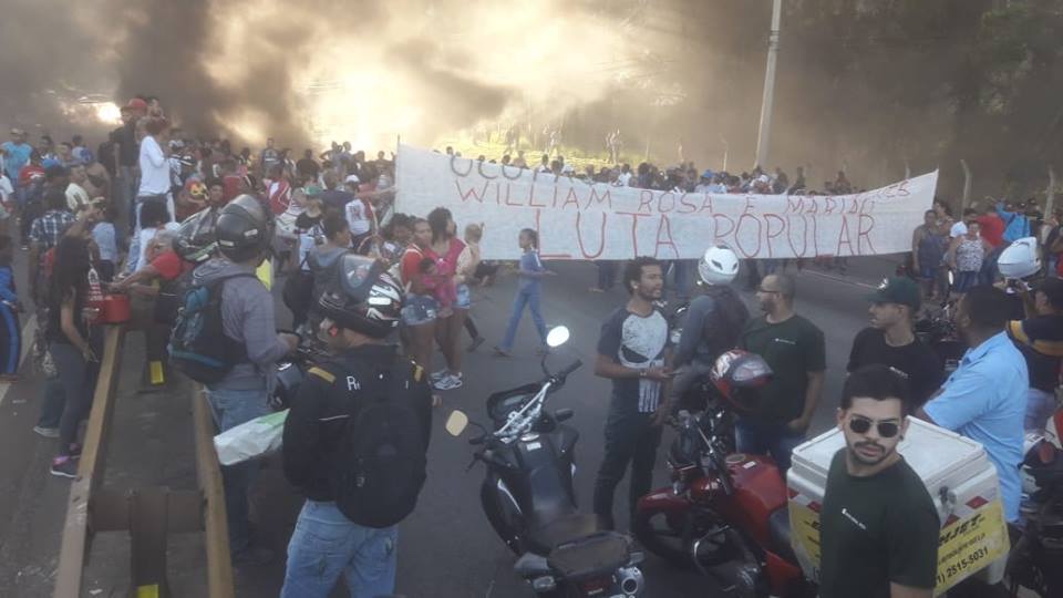 Moradores das Ocupações WILLIAM ROSA, MARIÃO e PROFESSOR FÁBIO ALVES fecham o anel rodoviário, em Belo Horizonte, MG, nesta manhã do dia 29/01/2019, em protesto CONTRA a mineradora Vale e a cumplicidade dos governos que dia 25/01/2019 causou um crime/tragédia gigante a partir de Brumadinho, região metropolitana de Belo Horizonte, MG. O bloqueio do Anel Rodoviário é também luta contra o mandado de despejo para a Ocupação Professor Fábio Alves, pelo pagamento da bolsa moradia e pela construção imediata dos apartamentos acordados com o Governo de MG e com a prefeitura de Contagem.