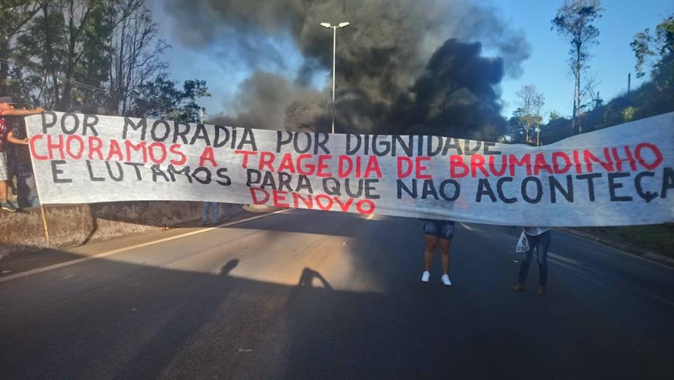 Anel rodoviário bloqueado em BH em protesto contra crime-tragédia da VALE e por direito a moradia.