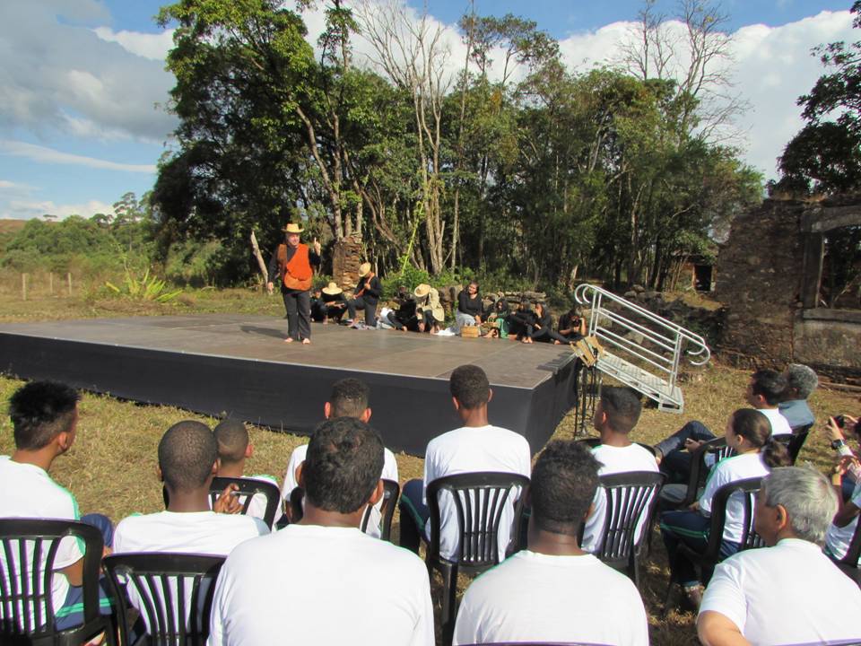 O grupo de teatro São Gonçalo do Bação, sob direção do dramaturgo Mauro Antônio de Souza ou Mauro Ghoña, em parceria com a Estação Ecológica Estadual Aredes-IEF e patrocínio da SAFM, vai apresentar uma nova peça inspirada no livro publicado em 2016: “Aredes- Recuperação Ambiental e Valorização de um sítio arqueológico”, organizado pelos historiadores e arqueólogos Alenice Baeta e Henrique Piló. A peça de teatro apresenta um olhar artístico e comunitário sobre a obra Aredes – suas memórias, pessoas, lugares e paisagens. Vale a pena assistir e se inspirar nesta bela peça teatral que fará parte da Programação do Festival de Inverno de São Gonçalo do Bação, Itabirito, MG. A apresentação inaugural da peça será no dia 26 de julho, às 20 horas no Adro da Igreja do Vilarejo Bação, no município de Itabirito, MG. O livro, inspiração da peça, focaliza os mecanismos de proteção e valorização da paisagem e do sítio histórico-arqueológico Aredes, situado no município de Itabirito, no Quadrilátero Ferrífero e Aquífero de Minas Gerais, por meio de sua reabilitação ambiental. O sítio histórico e arqueológico Aredes situa-se na Unidade de Conservação Estação Ecológica Estadual de Aredes e suas origens remontam ao início do século XVIII, despontando como importante núcleo de extração aurífera, pouso de tropas e produção de alimentos na antiga região de Itabira do Campo. Possui uma série de estruturas construídas em alvenaria de pedra. Parte delas estava seriamente comprometida devido aos processos erosivos ocasionados por grandes crateras realizadas nos últimos decênios por uma mineradora que atuava na área de forma ilícita, colocando em risco as riquezas culturais e naturais da área. O limite de uma das crateras já se encontrava a um metro de distância de um longo muro de pedras, exigindo medidas urgentes de contenção e de reabilitação ambiental. Tais medidas de reabilitação tiveram início em meados da primeira década do século XXI, culminando em um acordo firmado junto ao Ministério Público Estadual, que propiciou, entre outros avanços, a criação da Estação Ecológica de Aredes, visando a proteção e a conservação das ruínas ali existentes. Esta é a história em poucas linhas e cada capítulo apresenta uma perspectiva sobre Aredes. Certamente os olhares não se esgotam, pois se trata de uma região muito instigante e de grande complexidade. Uma publicação sobre Aredes foi uma grande oportunidade de difundir as paisagens de um lugar marcado pelos diferentes estigmas deixados pelas atividades da mineração aurífera desde tempos coloniais, além de aprofundar sobre os aspectos relacionados à degradação ambiental, ocorrida nos últimos decênios e possíveis soluções, visando a sua recuperação ambiental e a melhoria da qualidade de vida na região. Agora, Aredes e Bação, lugares vizinhos e imbricados historicamente, se entrelaçam novamente através da arte e da escrita – marcados por lugares lindíssimos regados por várias histórias em seus auríferos córregos, dentre eles o Silva, o Bugre, o Carioca e o Ribeirão do Mata Porcos, formadores do rio Itabirito, já tão penalizado e ameaçado por empreendimentos econômicos que causam severos danos socioambientais na região. Mas tanta força e resistência cultural ativada pela beleza de seu povo e de suas paisagens revigoram os genuínos desejos de proteger e preservar o seu patrimônio material, imaterial e a sua biodiversidade em forma de arte e de mobilização social. O nosso querido diretor de teatro Ghoña comenta: “… constata-se que o processo teatral se torna efetivamente relevante para uma determinada sociedade ou grupo social a partir de sua relação direta com as questões que permeiam o imaginário cultural daquele grupo ou sociedade. Nessa dinâmica, o Teatro coopera com a afirmação- ou negação – criando novas relações imagéticas coletivas que corroboram para estabelecer laços comunitários” (SOUZA, 2014:12). No dia seguinte à apresentação da peça, ainda dentro da programação do Festival de Inverno, haverá uma atividade junto aos jovens da região, onde será feito um circuito cultural, quando serão percorridos caminhos do Bação com paradas nos chafarizes e nos antigos becos. Enfim, que a comunidade de Bação mostre a sua essência, a sua cultura e a sua força. Florescer! Itabirito Resiste! Minas Resiste.