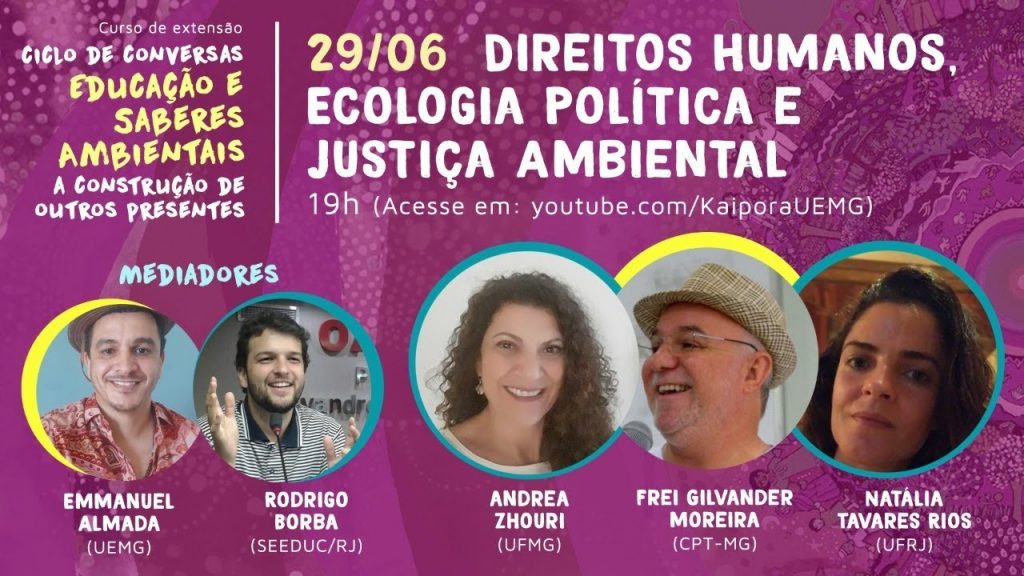 Dia 29/6/2020, frei Gilvander Luís Moreira participou de Live de um Curso da UEMG, ao lado das professoras Andrea Zhouri (UFMG0 e Natália Tavares Rios (UFRJ). A íntegra da Live está no youtube no canal: kaipora UEMG . Eis, aqui, a palestra ministrada por frei Gilvander sobre o tema: Direitos Humanos, Ecologia Política e Injustiça Ambiental.