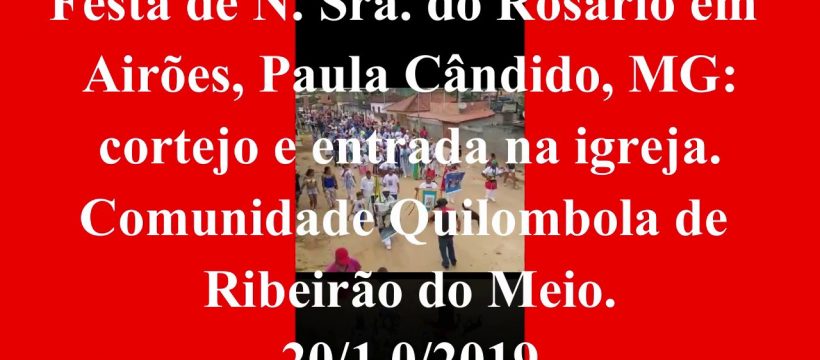 Dias 19 e 20 de outubro de 2019 aconteceu a 131ª Festa de Nossa Senhora do Rosário, da Comunidade Quilombola de Córrego do Meio, no distrito de Airões, no município de Paula Cândido, na zona da mata mineira, arquidiocese de Mariana. Convidado pela Comunidade Quilombola do Córrego do Meio, eu, frei Gilvander, com anuência do padre que celebra na comunidade, acompanhei a festa e presidi duas missas e outras celebrações, além de participar do cortejo do Congado que iniciou às 4 horas da madrugada e foi, de casa em casa cantando, dançando e rezando, expressando a imensa fé que a comunidade tem em Nossa Senhora do Rosário.