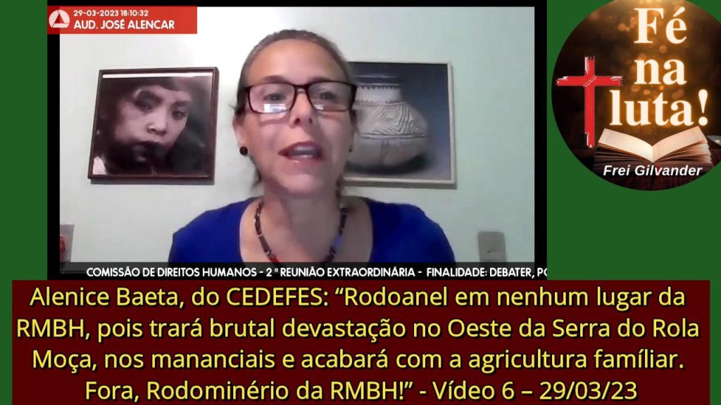 Alenice Baeta, do CEDEFES: “Rodoanel em nenhum lugar da RMBH, pois trará brutal devastação no Oeste da Serra do Rola Moça, nos mananciais e acabará com a agricultura familiar. Fora, Rodominério da RMBH!” – Vídeo 6 – 29/03/23