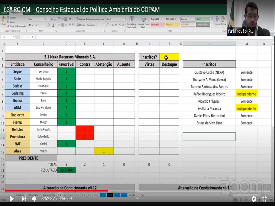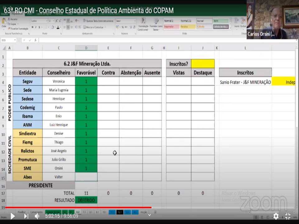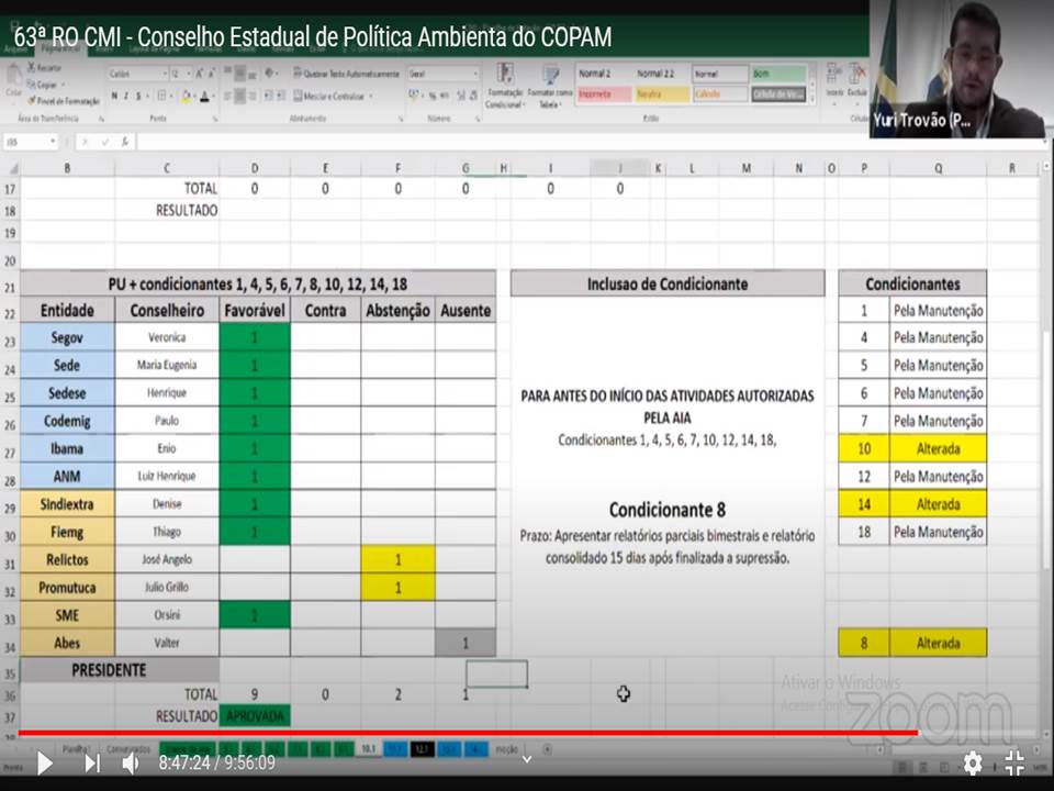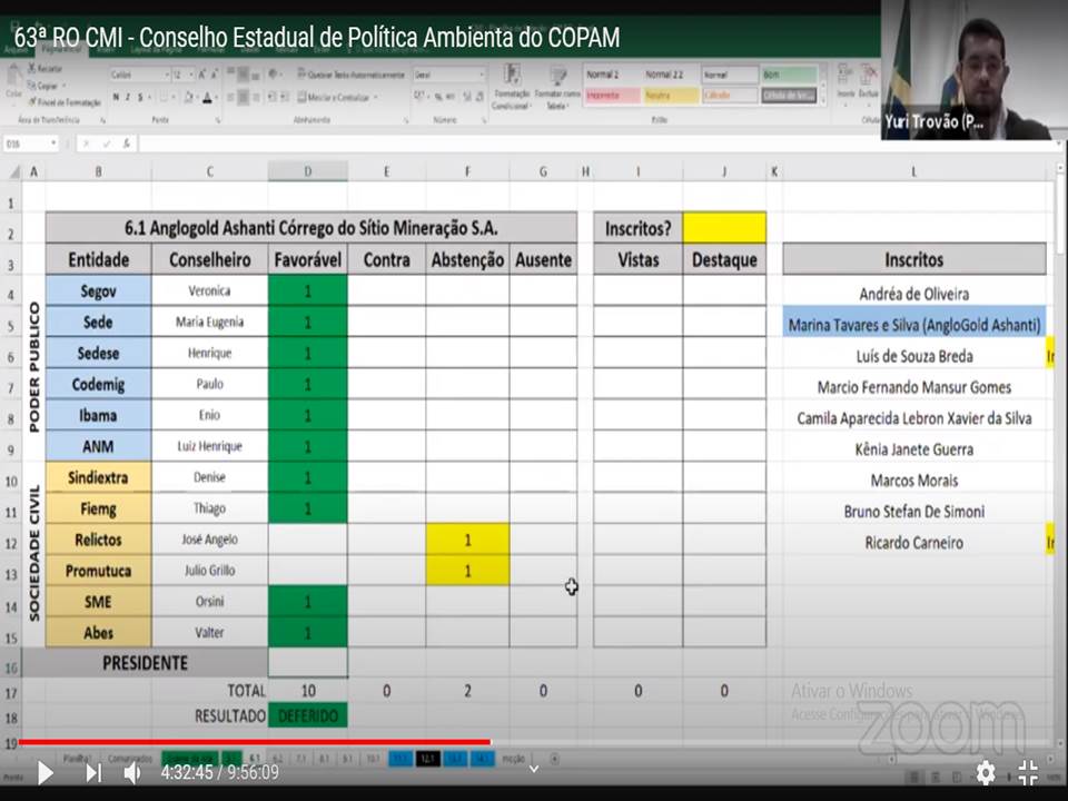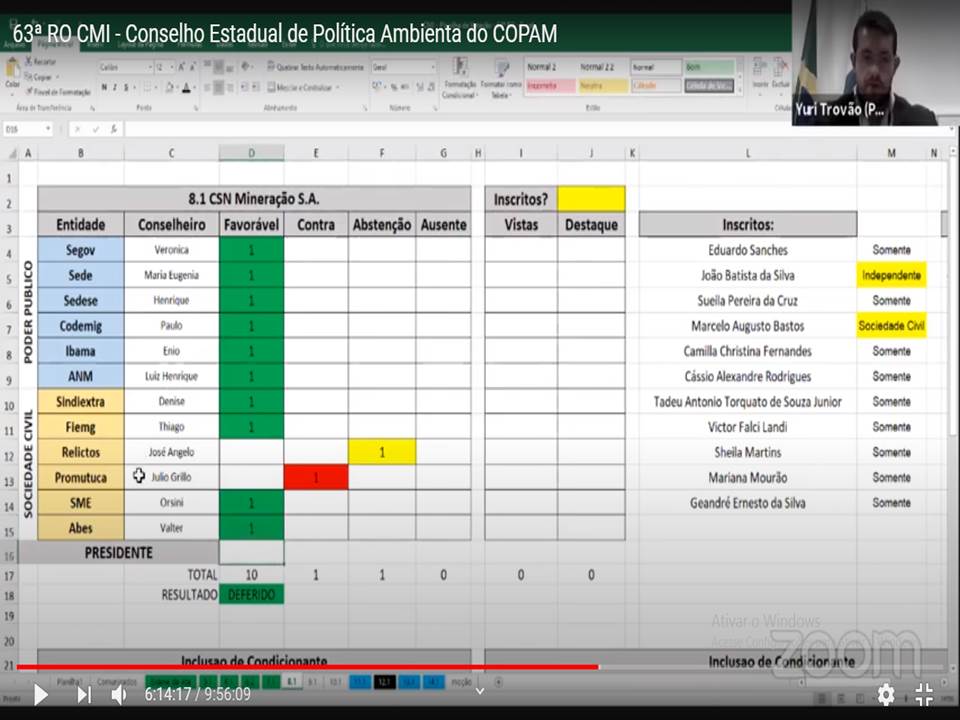 Com essa composição, TODOS os pedidos de licenças ou adendos, que as empresas mineradoras encaminharam foram aprovados. As decisões desrespeitaram as manifestações das entidades locais, que enviaram suas posições por meio das ONGs ambientalistas (em apenas um caso não ocorreu nenhum tipo de manifestação das comunidades). Abaixo, o resultado das votações que tem sido o mesmo em todos os processos de mineração devastadora.