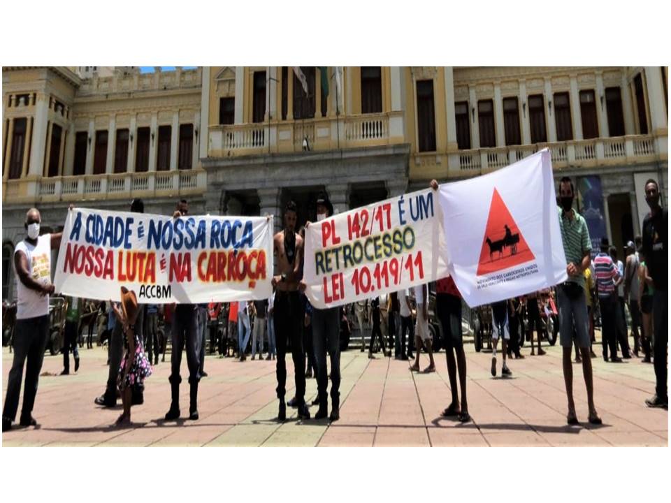 Outra questão central nesse debate é que os carroceiros e carroceiras se autorreconhecem como Comunidade Tradicional, com modo de vida próprio e cujo direito está garantido pela Convenção 169 da Organização Internacional do Trabalho (OIT), da ONU, da qual o Brasil é signatário. Além disso, o Decreto 6040/2007 e a Lei 21147/2014, que criaram, respectivamente, as Políticas Nacional e Estadual de Povos e Comunidades Tradicionais, também garantem o direito dos/as carroceiros/as a manter seu modo de vida. Vale lembrar que entre os/as carroceiros/as há também inúmeros ciganos e quilombolas. Assim, qualquer tipo de ação, seja do setor público ou privado que comprometa o modo de vida dos carroceiros e carroceiras caracteriza uma clara violação à Convenção 169 e à legislação citada.