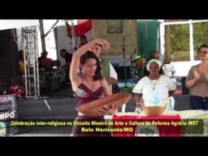 A diversidade religiosa presente de forma significativa nos Assentamentos e Ocupações do MST foi celebrada no segundo dia do Circuito Mineiro de Arte e Cultura da Reforma Agrária do MST, ao lado da inauguração do Armazém do Campo em Belo Horizonte/MG. Participaram dessa celebração inter-religiosa, Frei Gilvander Moreira, da Igreja Católica, a Mãe de Santo Mafugemê, do Candomblé, e a Pastora Sônia, da Igreja Metodista. Nesse vídeo, a exaltação à Mãe Terra, à Irmã Água, à Irmã Luz, ao Irmão Vento, às sementes lançadas, aos frutos da terra!