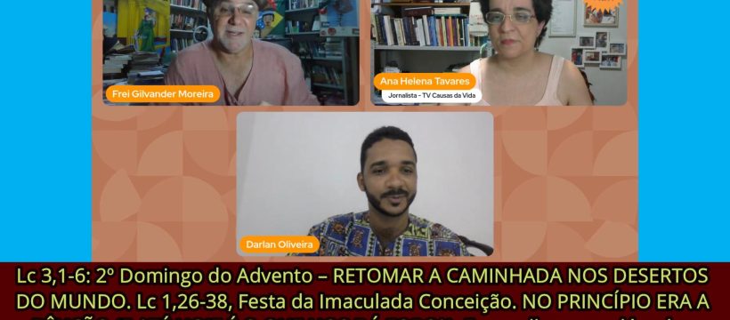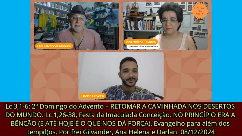 Lc 3,1-6: 2º Domingo do Advento – RETOMAR A CAMINHADA NOS DESERTOS DO MUNDO. Lc 1,26-38, Festa da Imaculada Conceição. NO PRINCÍPIO ERA A BÊNÇÃO (E ATÉ HOJE É O QUE NOS DÁ FORÇA). Evangelho para além dos temp(l)os. Por frei Gilvander, Ana Helena e Darlan. 08/12/24