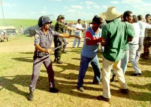 Sendo produto das próprias contradições do capital, os três mil camponeses posseiros de Trombas[2], assim, constituíram um território autônomo e, com o apoio de quatro militantes do Partido Comunista Brasileiro (PCB), organizaram-se em Conselhos de Córregos, trabalhavam coletivamente, inclusive com Comissão de Segurança, e fundaram a Associação dos Lavradores de Formoso e Trombas (Cf. MARTINS, 1983, p. 72); conquistaram a criação do município de Formoso e elegeram um de seus líderes, José Porfírio, como deputado estadual, mas logo nos jornais se ‘plantou’ a notícia: “República Socialista de Trombas,” que somente no início da década de 1970, seis anos após o golpe militar, foi invadida por tropas do exército brasileiro. “Durante cerca de vinte anos, os camponeses de Trombas estiveram politicamente organizados num território próprio, imune ao poder do Estado. Tratava-se da tática política usada na Guerra da Coreia, da mesma época, que foi a de conquistar e liberar territórios, ali instituindo a presença organizada de camponeses armados” (MARTINS, 1999, p. 64).