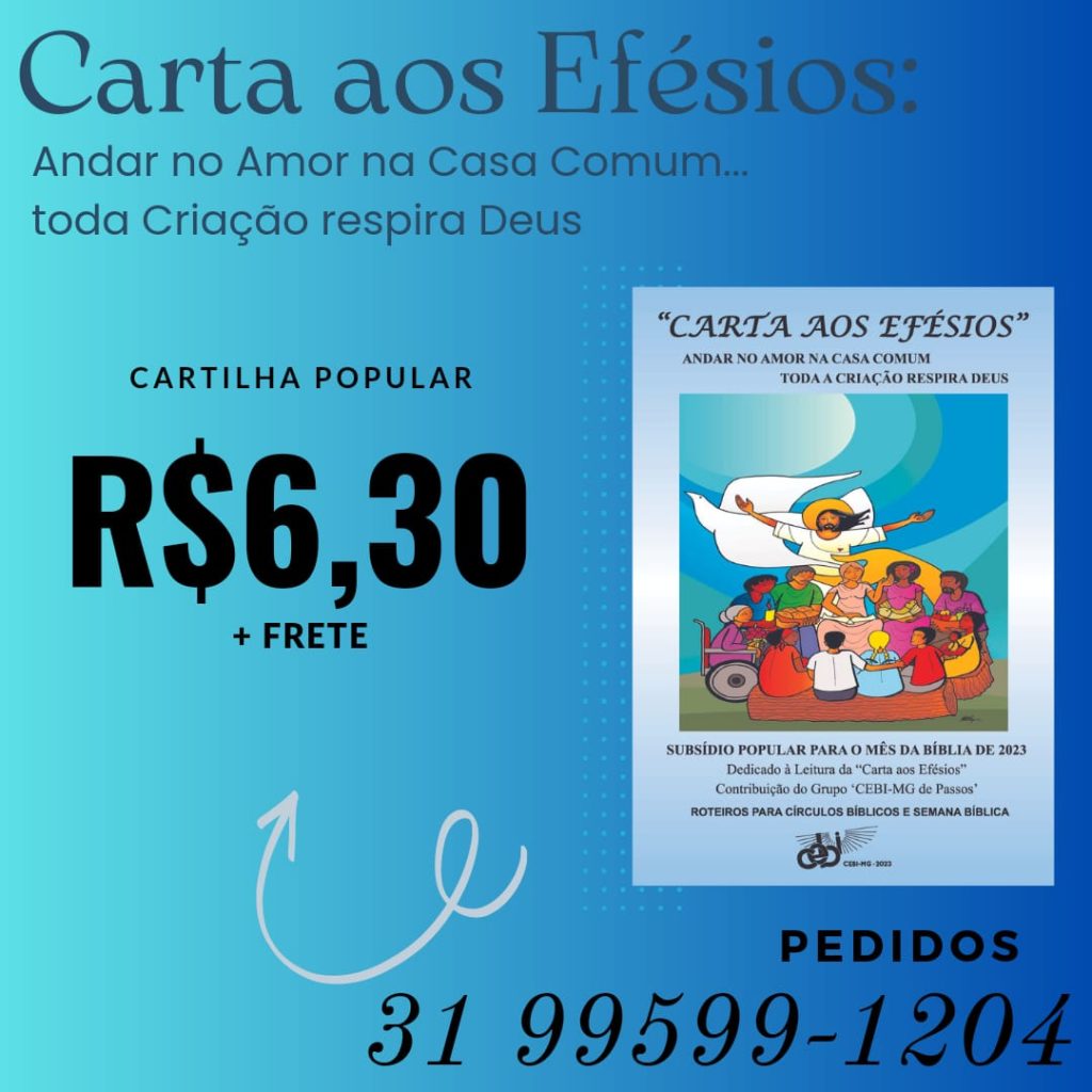 Pensando no nosso compromisso e engajamento de luta, o Centro Ecumênico de Estudos Bíblicos (CEBI-MG) oferece, como material de estudo e aprofundamento, o texto-base (92 páginas) e a cartilha popular (com 4 círculos bíblicos e 1 plenária/celebração) e, quer assim, subsidiar uma leitura militante, libertadora e comunitária da Carta aos Efésios.