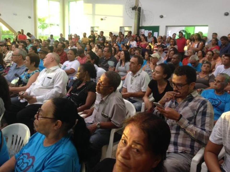 Auditório do Centro de Referência da Pessoa Idosa, em Sarzedo, região metropolitana de Belo Horizonte, MG, repleto de representantes de várias comunidades de Sarzedo e de entidades ligadas ao movimento social e ambientalista, durante a Audiência Pública sobre a Mineradora Itaminas, que atua há 59 anos no município. Fotos: A. Baeta.