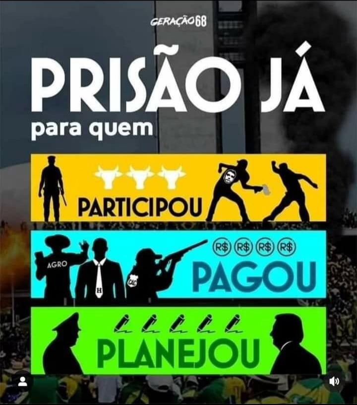 Nos pronunciamentos e nas ações das autoridades do Governo Federal, do STF e Senado Federal ficou evidenciado que: os discursos de ódio e de intolerância foram o combustível para os atos golpistas; os golpistas não passaram e nunca passarão; todos/as que participaram dos atos golpistas diretamente, ou financiando, ou estimulando, ou sendo mentores intelectuais devem ser levado às barras do STF, julgados e condenados. Prisão, já, para quem participou, pagou, planejou e financiou!  “Sem anistia!”, eis o grito de luta do povo brasileiro que sabe o valor da democracia.