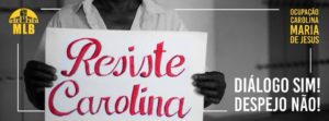 Com a possibilidade de iminente despejo, amplia e se fortalece a Rede de Apoio às famílias da Ocupação-Comunidade  Carolina Maria de Jesus. Em reunião realizada no prédio da Ocupação, localizado no centro de Belo Horizonte, na Avenida Afonso Pena, 2300, Bairro Funcionários, moradores e apoiadores manifestaram-se determinados pela continuidade da luta e resistência e abertos à negociação na Mesa de Diálogos do Governo de MG, para que se chegue, senão à decisão pela permanência no prédio, (decisão mais justa e sensata a se tomar) a alternativa prévia e digna para as famílias. “Se for para sair, que seja para moradias iguais ou melhores”, cobra o MLB. Depoimentos e relatos de moradores e apoiadores deixam clara a situação de  descaso do Poder Público – tanto por parte da Prefeitura de Belo Horizonte, como do Governo de Minas Gerais – com a política habitacional e a forma insensata e desrespeitosa com que têm conduzido os processos de ocupação, além de não cumprir o que prometem. Pelo direito à cidade, pelo sagrado direito à moradia, a palavra de ordem é”: “Resiste, Carolina.”