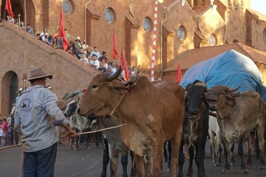 De 1º a 15 de agosto de 2019, está acontecendo a 149ª Festa de Nossa Senhora da Abadia em Romaria, uma Nazaré brasileira de apenas 4 mil habitantes, na região do Alto Paranaíba, Arquidiocese de Uberaba, MG. O dia 11 de agosto foi marcado pelo desfile dos carros de boi vindos de diversos municípios do estado de Minas Gerais. Os carreiros viajam com a família, durante três, quatro ou até mais dias, dependendo de onde saem. No carro de boi levam tudo o que precisam pra viagem: alimentos, barracas, roupas e, sobretudo, a fé, a coragem, a esperança e a confiança em Nossa Senhora da Abadia. O desfile dos carros de boi é tradição na Festa de Nossa Senhora da Abadia e há quem participa dessa caravana desde os primeiros meses de vida. Tradição de família que vai sendo passada de geração em geração. Conta a história que o Santuário de Nossa Senhora da Abadia foi construído com ajuda dos carreiros e seus carros de boi. Foram eles quem trouxeram as pedras e a imagem há 149 anos. Nesse vídeo, o desfile dos carros de boi à frente do Santuário de Nossa Senhora da Abadia de Água Suja, em Romaria, MG, no dia 10/8/2019, e a bênção com água benta pelo Arcebispo da Arquidiocese de Uberaba, Dom Paulo Mendes Peixoto.