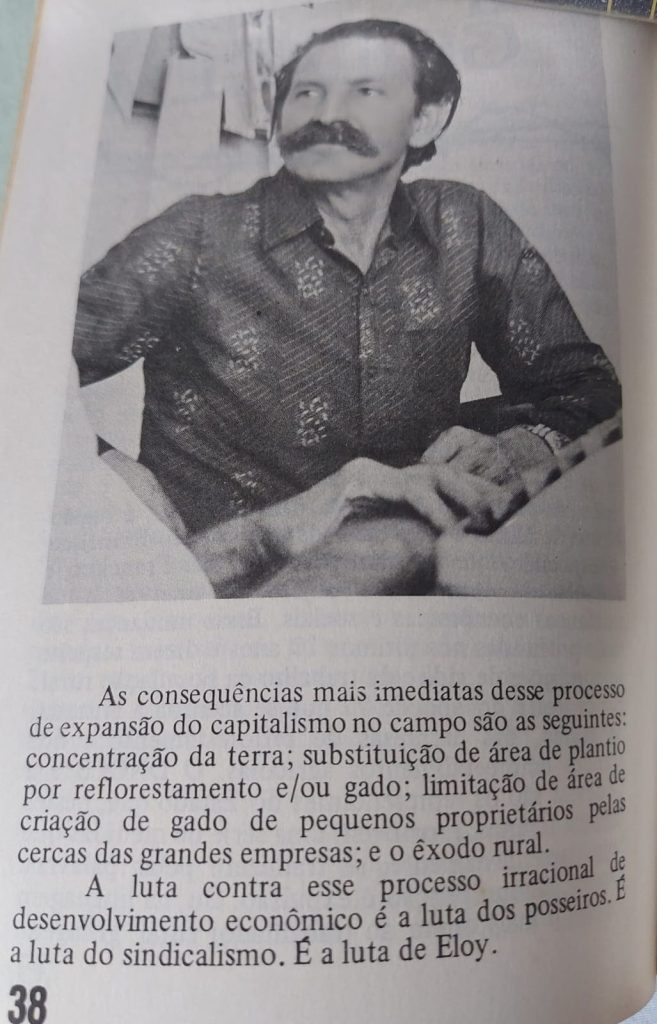 “Trabalhador rural não é covarde”, dizia Eloy, que denunciava as pressões, os despejos e as queimas de casas a todas as entidades que podiam dar algum apoio. Combatia toda violência que recaia sobre os camponeses posseiros: “Nossa arma é união, organização e a verdade”, Eloy sempre dizia.