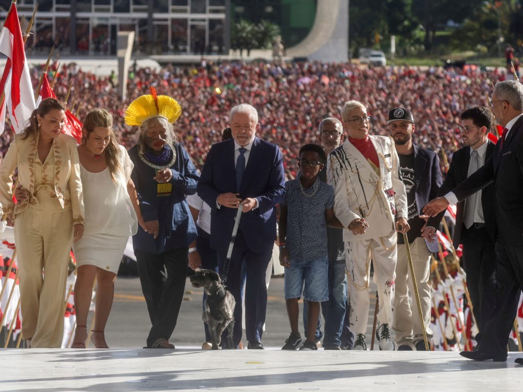 O primeiro foi a entrega da faixa presidencial. Em lugar do ex-presidente, que havia fugido para o colo de Trump nos USA, a faixa acabou sendo entregue ao novo presidente Luiz Inácio Lula da Silva por representantes da própria população, com destaque para os setores vulneráveis, nos quais a vida se encontra mais ameaçada. E não foi só isso! Essas mesmas pessoas subiram a rampa junto com o presidente Lula, o vice-presidente Alkimin e suas respectivas primeiras-damas.